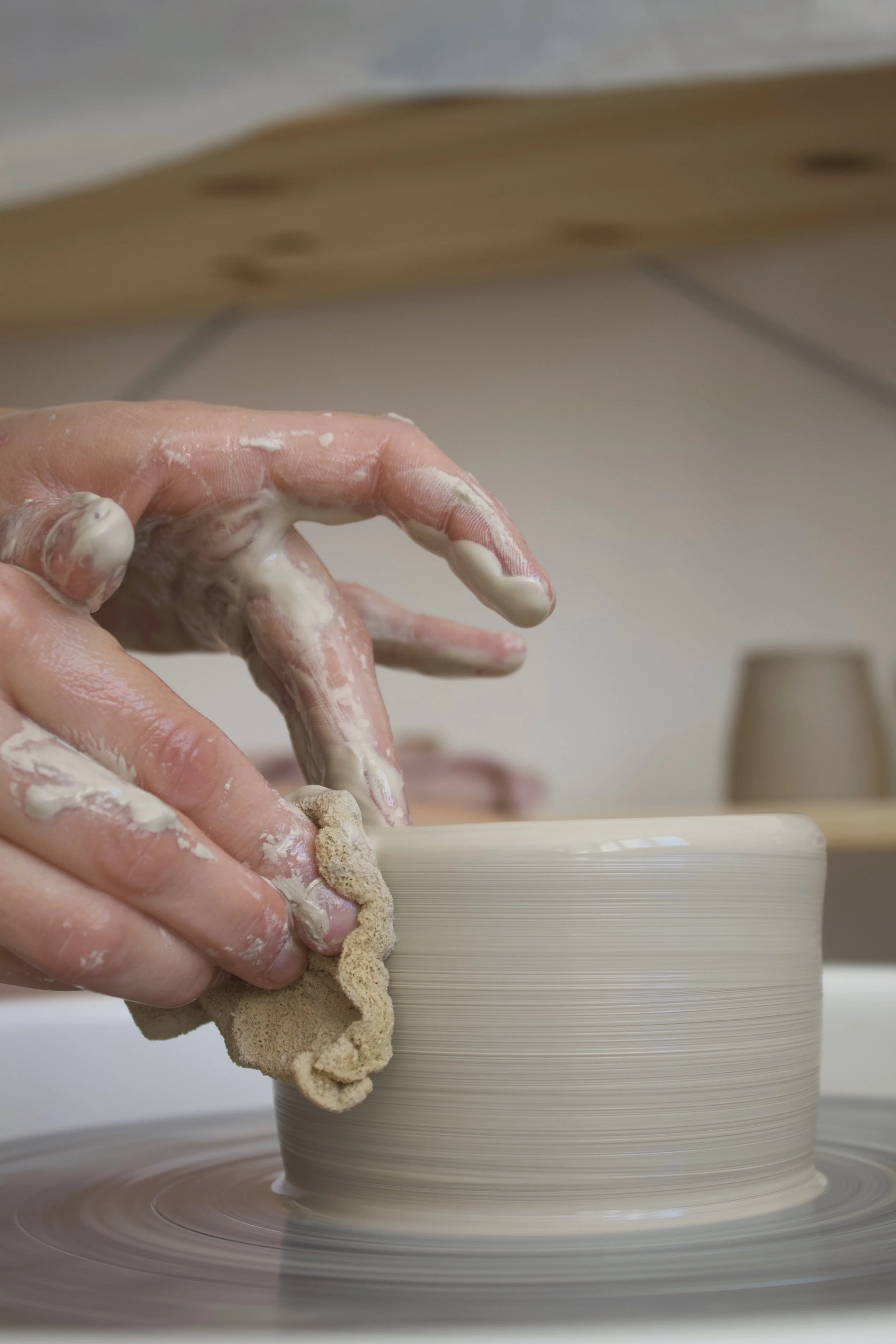 Wie zentriert man einen Tonball auf der Töpferscheibe?
