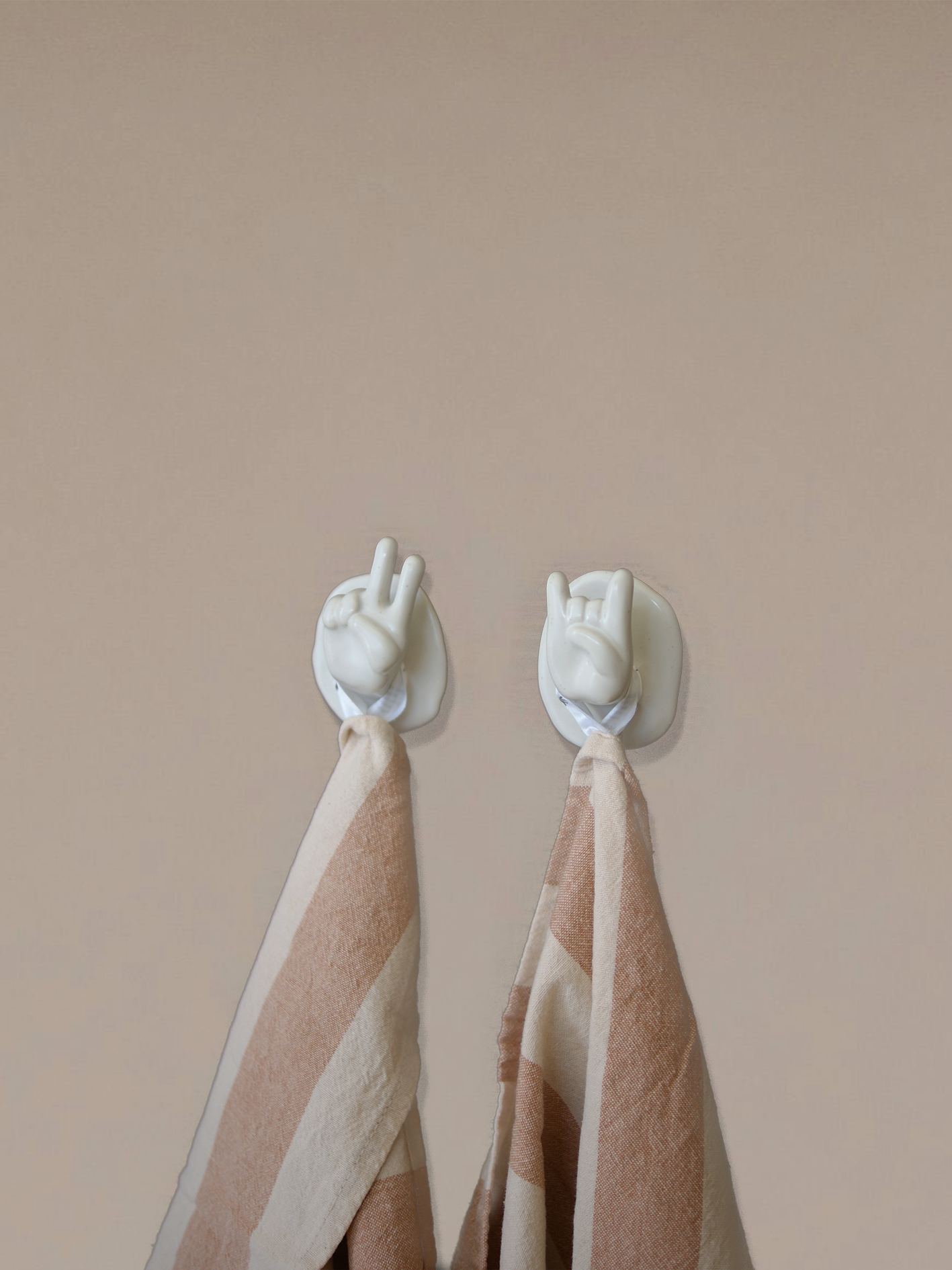 Handgebauter Wandhaken aus Steingut in Form einer Hand.
